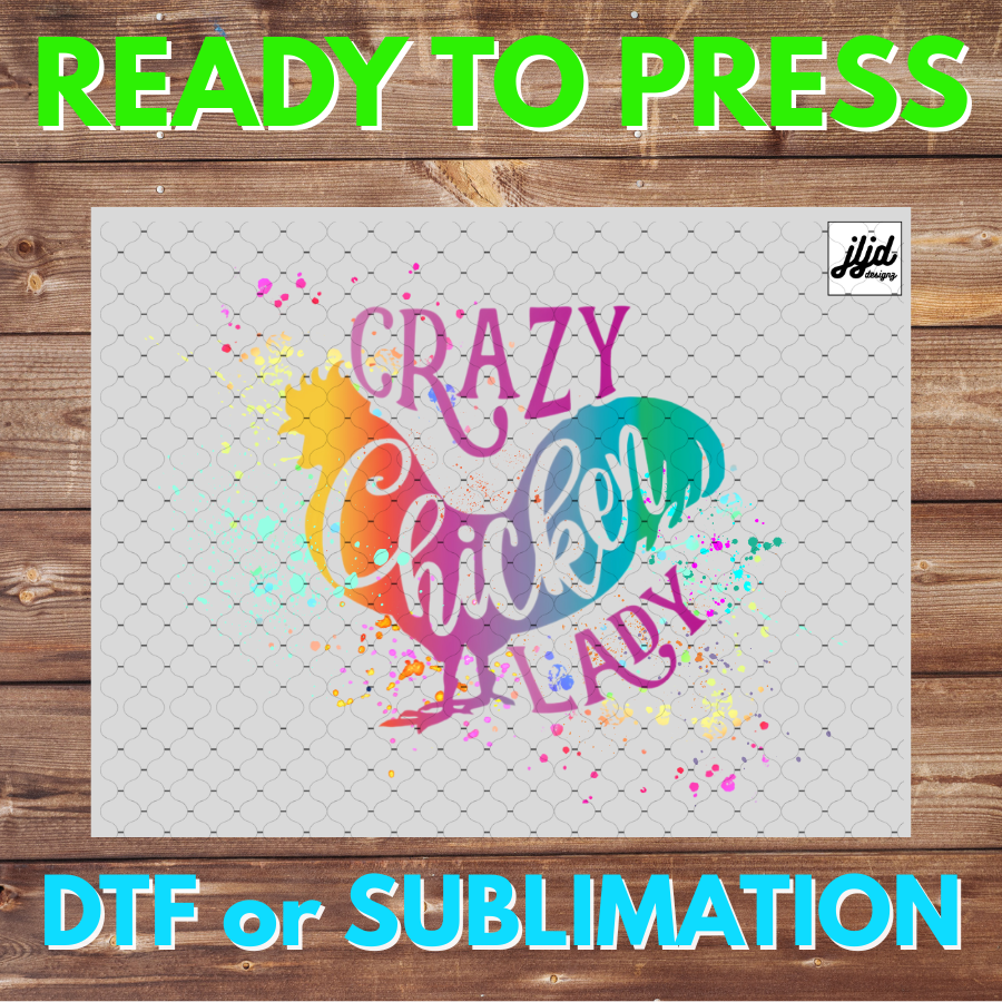 Crazy Chicken Lady | rooster | watercolor | neon | splatter | DTF | Sublimation