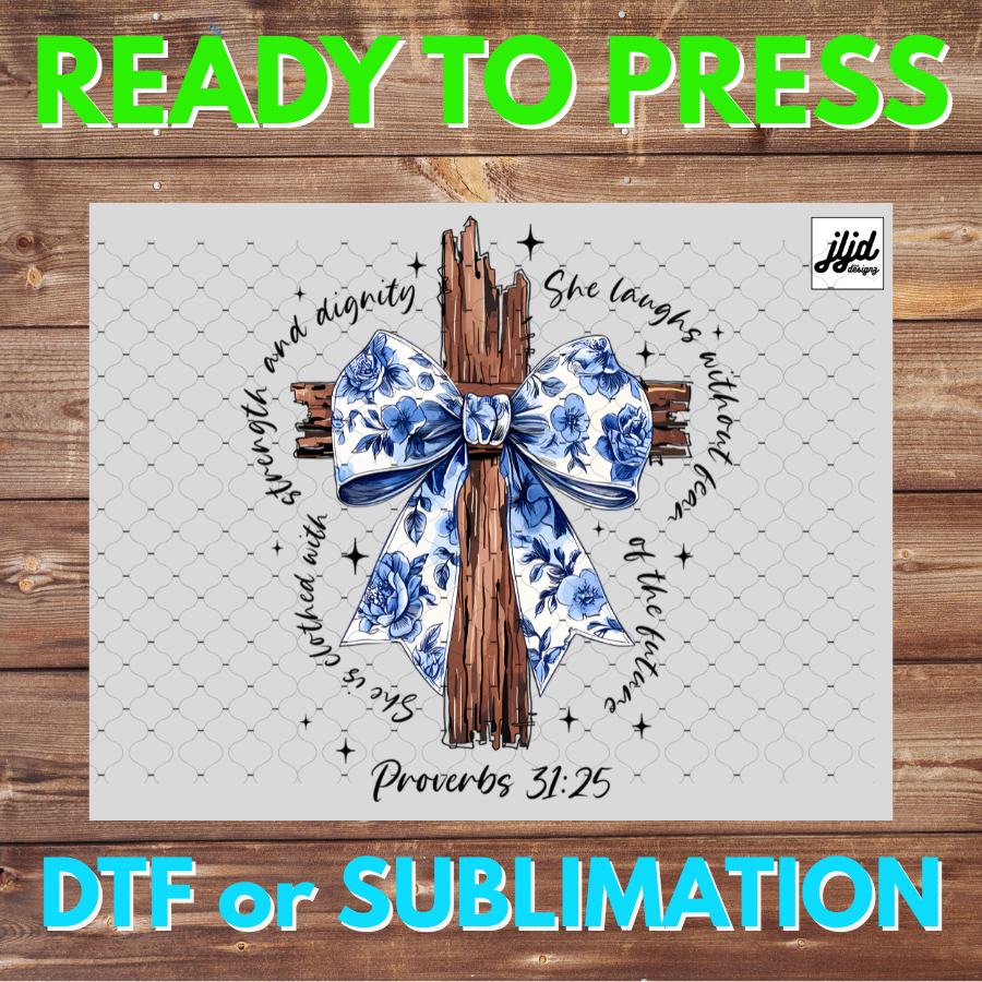Cross Faith Proverbs 31:25 Verse | Graphic tee | Jesus | bow | flower | DTF | Sublimation