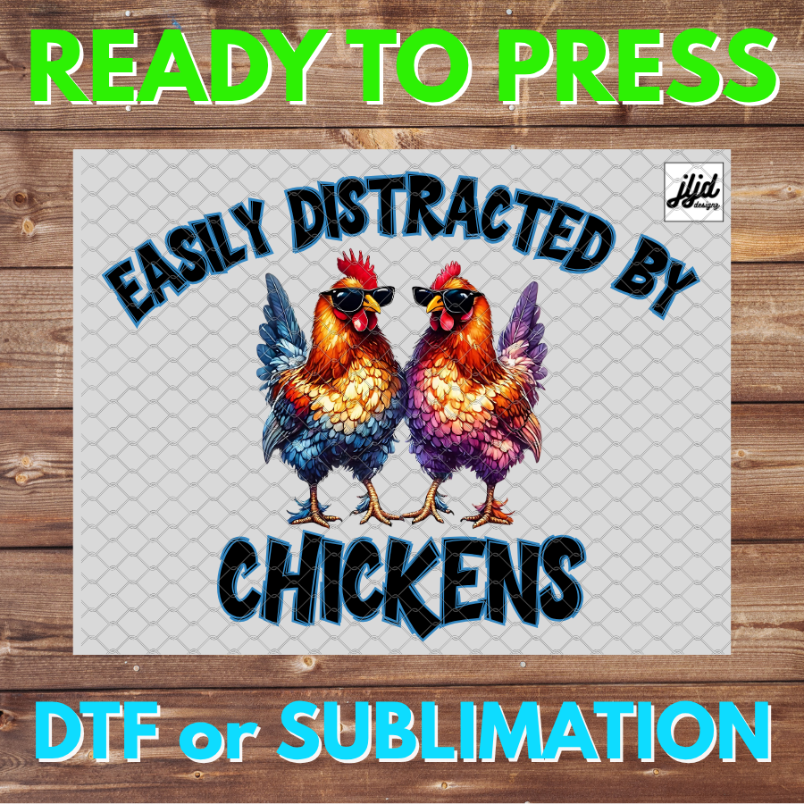 Easily Distracted by Chickens | Rooster | farm | DTF | Sublimation