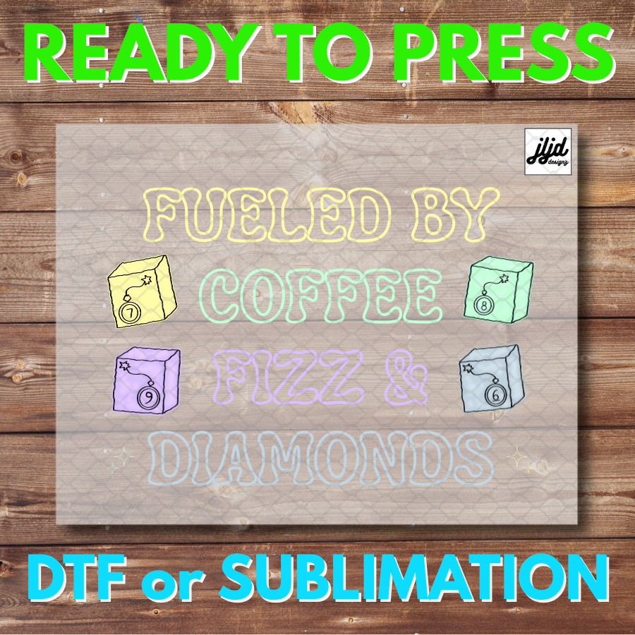 Fueled by Coffee, Fizz & Diamonds | Bomb Party | Graphic T Shirt | Rep Apparel | Jewelry Reveal | Fizz Fizzcano | DTF