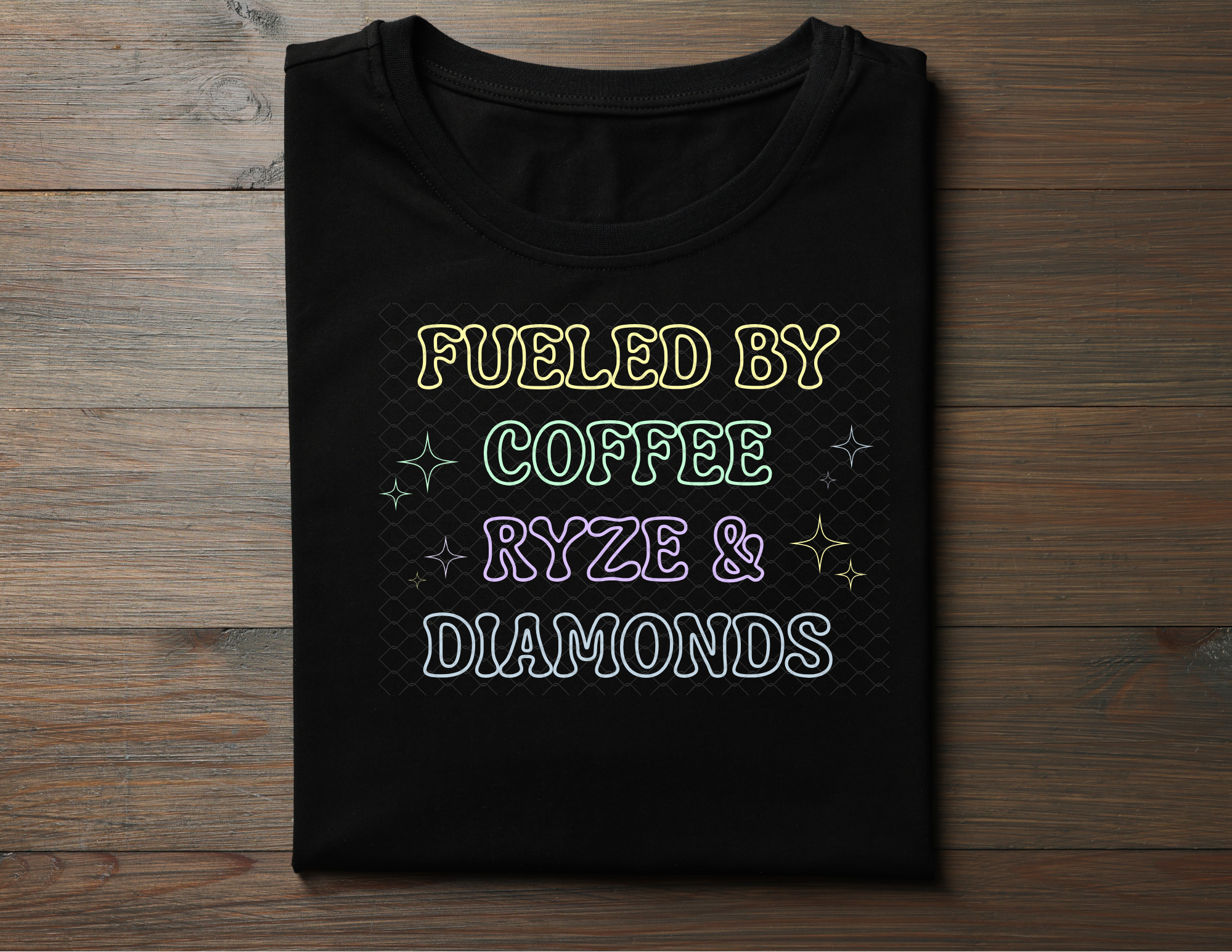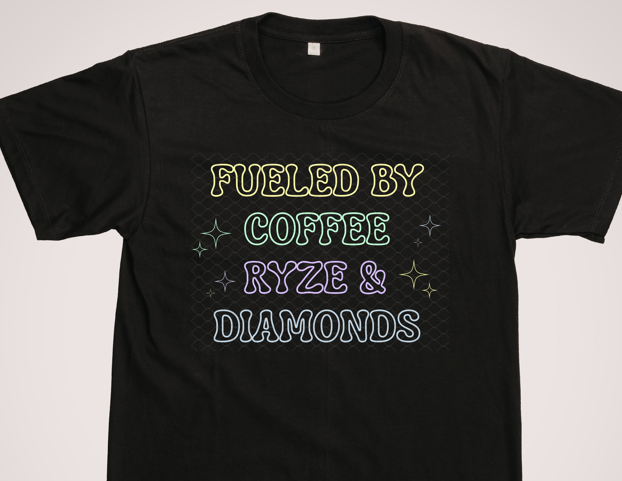 Fueled by Coffee, Ryze & Diamonds | Ryze Party | Graphic T Shirt | Rep Apparel | Jewelry
