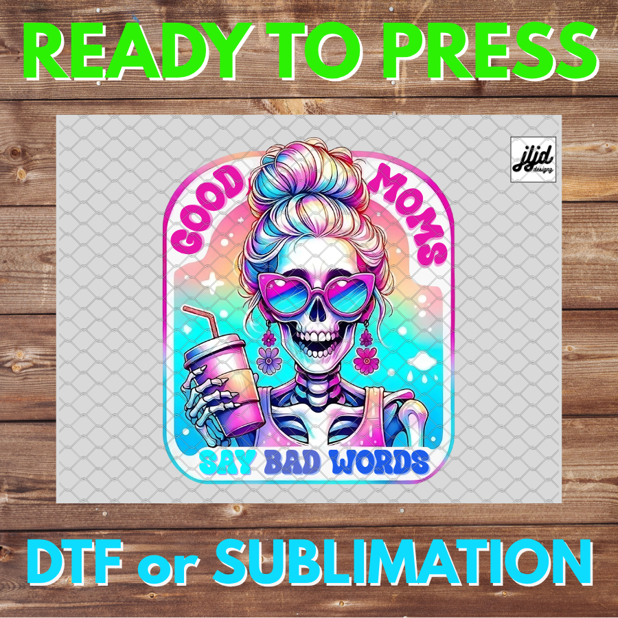 Good Moms Say Bad Words | Skeleton | neon | coffee | Mother’s Day | DTF | Sublimation