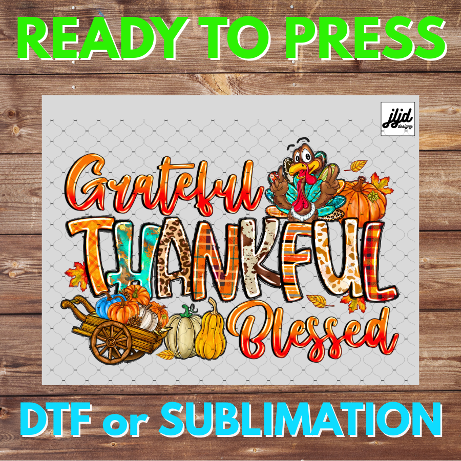 Grateful Thankful Blessed | fall | autumn | Thanksgiving | pumpkin | turkey | DTF | Sublimation