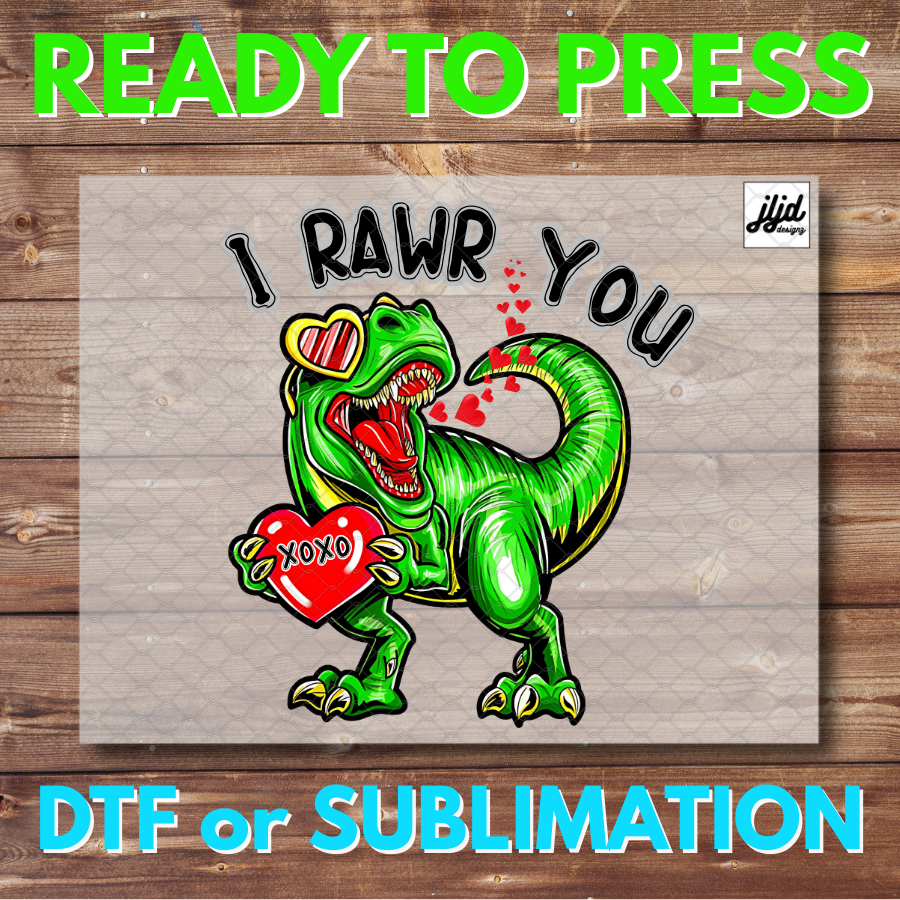 I Rawr You | Valentine’s Day | Graphic tee | Dinosaur T Rex | Love Heart Cupid | DTF | Sublimation
