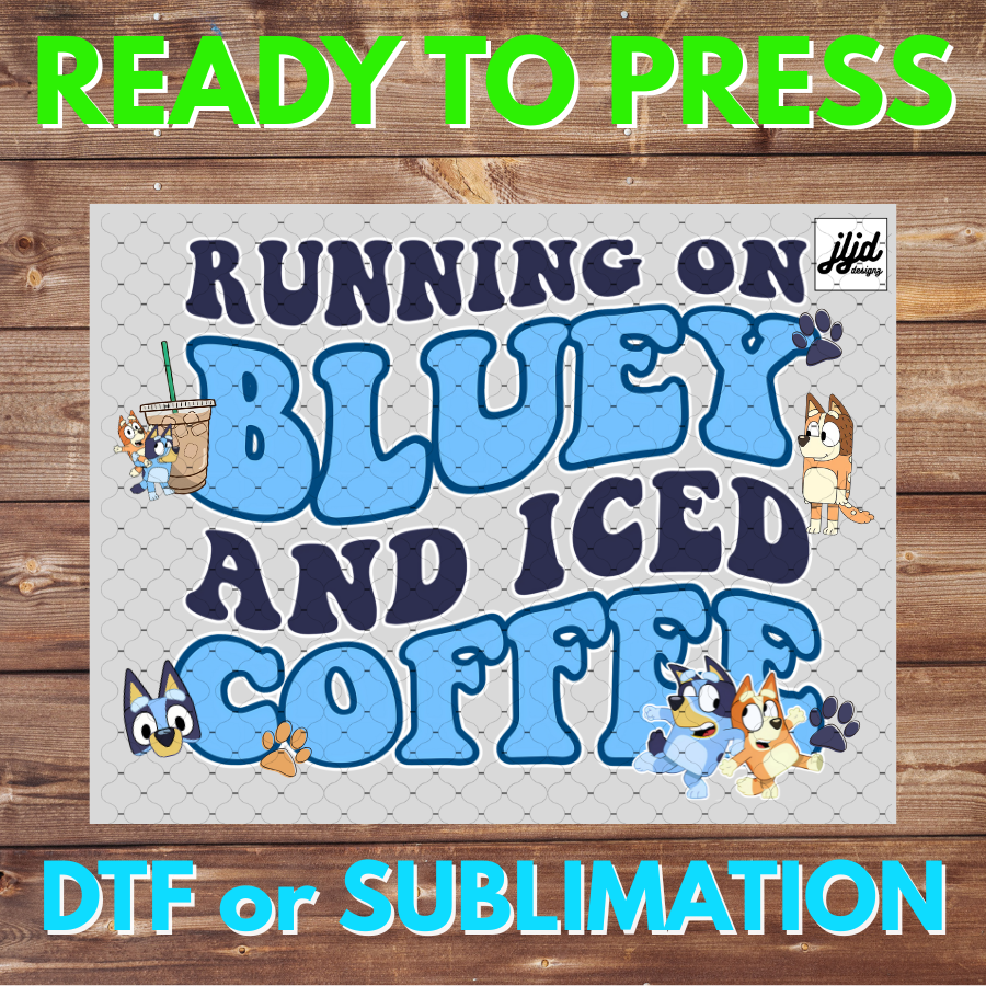 Running on Bluey and Iced Coffee | Graphic tee | Mom | Bingo | DTF | Sublimation