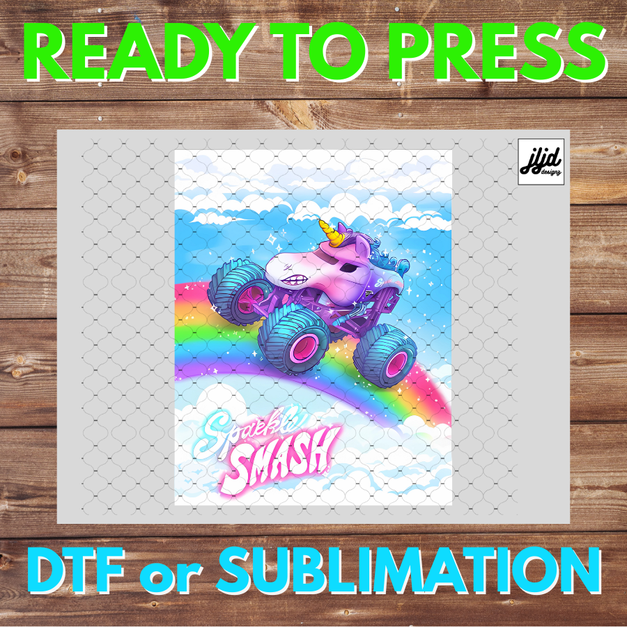 Sparkle Smash Monster Truck | Unicorn | DTF | Sublimation