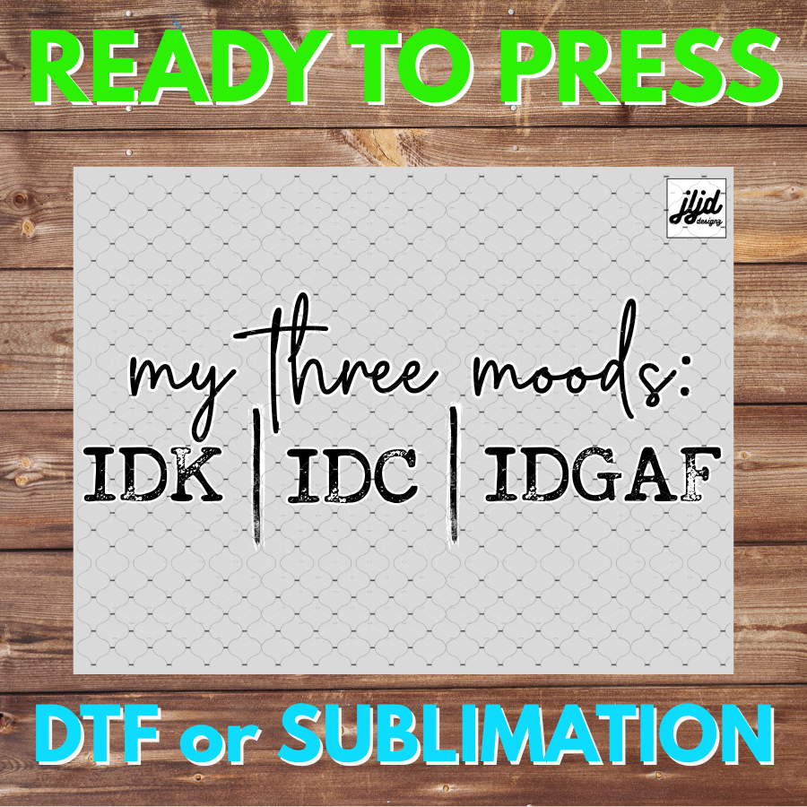 Three Moods IDK IDC IDGAF | Graphic T Shirt | funny | saying quote | DTF | Sublimation